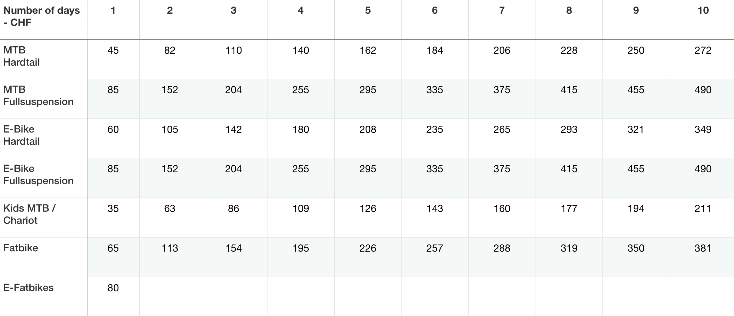 Erforsche das Engadin auf eigene Faust auf Top-Qualitäts-Bikes zum Mieten von Bulls, Norco oder Giant. Ob Du nun interessiert bist an Cross Country, Enduro oder Du einfach nur eine gemütliche Fahrt um die Seen machen willst, Engadin Bikes hat die Bikes und kann Dir Routen empfehlen, die zu Dir passen und Dir eine Bike-Karte mitgeben! Engadin Bikes versorgt Dich mit Helm, Pumpe, Ersatzteilen und einem Bike-Schloss für Deine Sicherheit. Der Shop hat auch Protektoren, Helme, normale oder Klick-Pedale. Bikes können für eine Stunde, einen halben Tag, ganztags oder mehrere Tage gemietet werden.